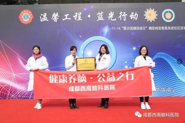 11月14日是联合国糖尿病日,当天上午中国狮子联会四川代表机构在成都金牛区体育中心举办了以预防糖尿病为主题的“温馨工程.蓝光行动”的大型公益活动。联合国糖尿病日前身是先进糖尿病日,由先进卫生组织和先进糖尿病联盟于1991年共同发起的,其宗旨是引起全球对糖尿病的警觉和醒悟。此次活动特意为大家准备了糖尿病防治健康讲座,免费血糖、血压检测,更有健步走、健康骑行等精彩活动。成都西南脑科医院长期以来都积极参加支持社会各类公益活动,这次我院派出的医疗志愿小队也与狮子联会的工作人员一起为到场的群众带来糖尿病和老年疾病的预防宣传讲解。