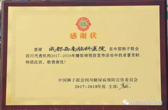 我院积极参与本次活动,认真负责的服务态度受到了主办单位和参与群众的高度认可,中国狮子会四川代表机构还为我院颁发了感谢状,感谢我院在本次活动中的卓著贡献。我院负责人表示,成都西南脑科医院一定不会辜负中国狮子会和广大人民群众的信任与期望,以后将多多投身于各类公益事业中,与更多的爱心单位一起,构建起一座爱心的桥梁,带给更多有需要的人温暖与帮助。