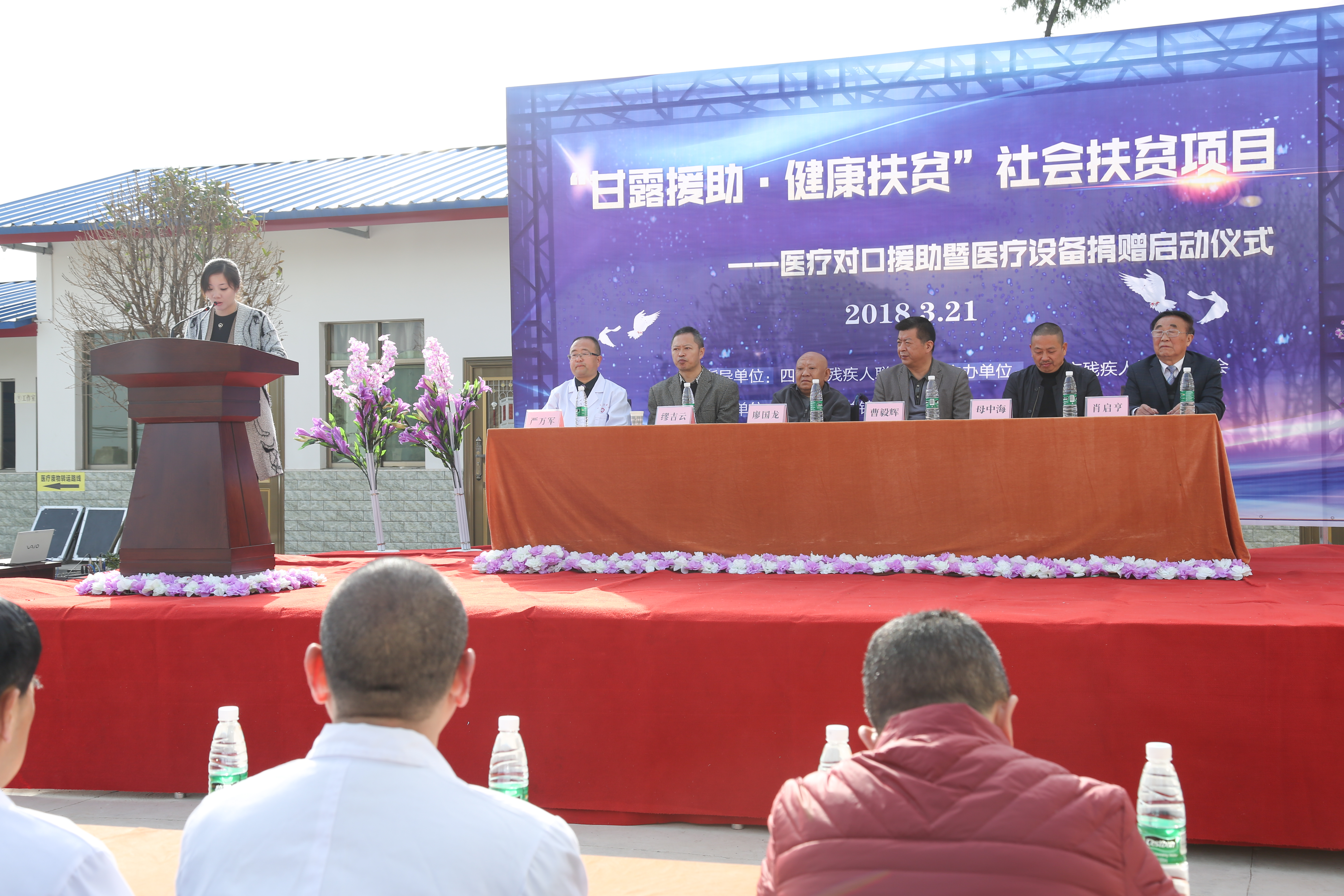 为了多方面贯彻落实医药卫生体制改革精神,探索构建区域医疗联合体,整合卫生资源,提高医疗服务体系宏观效率,提升基层医疗卫生机构服务水平,切实方便群众就医,3月21日,由四川省残疾人联合会为指导单位,成都市残疾人福利基金会主办,阆中市木兰镇卫生院与成都西南脑科医院共同承办的“甘露援助 健康扶贫”社会扶贫项目——医疗对口援助暨医疗设备捐赠启动仪式在阆中市木兰镇卫生院圆满的落下了帷幕。