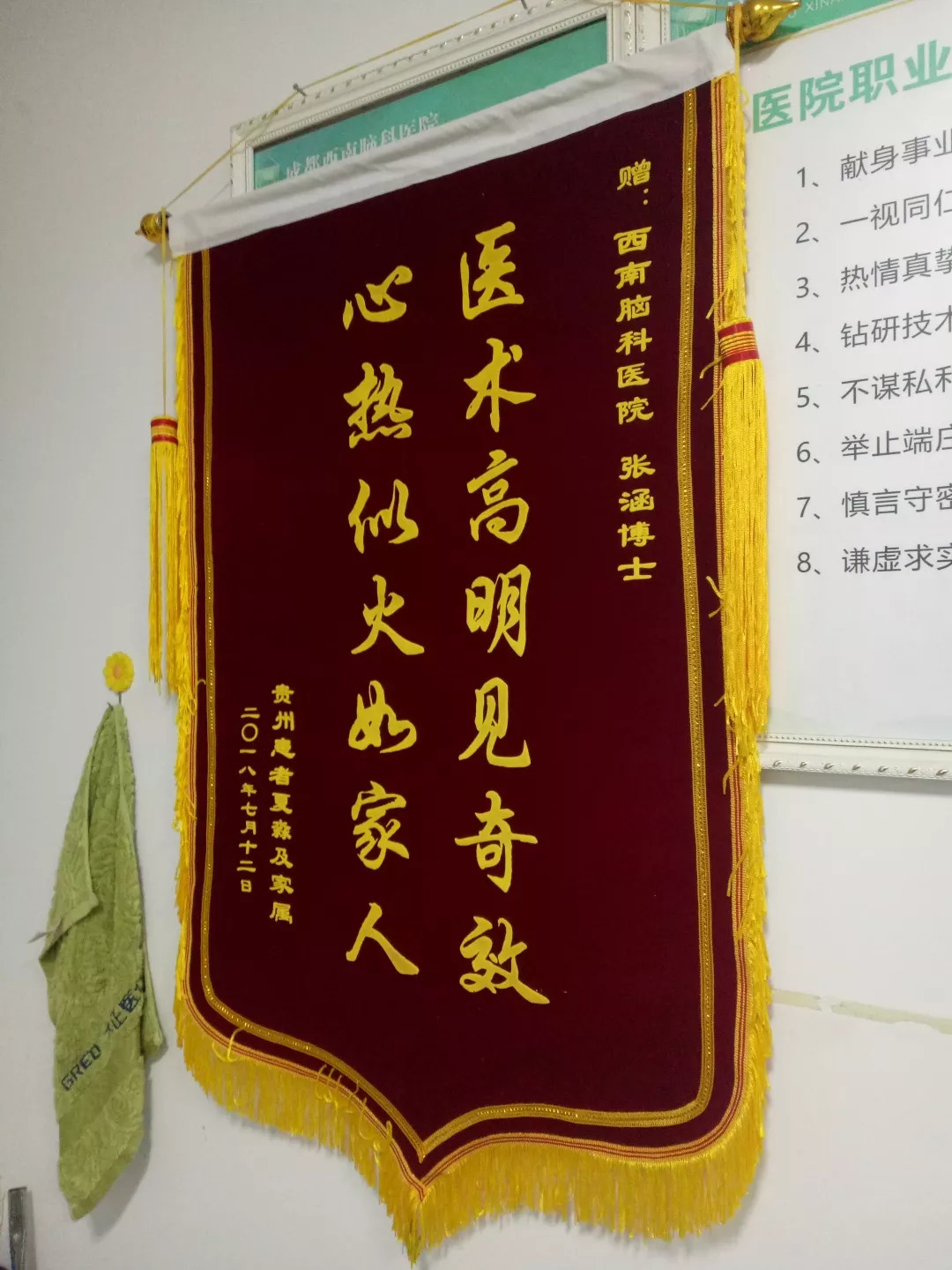 作为四川功能神经外科青壮派领军人物之一,张涵博士的手术很多,工作很繁忙。记者预约好几次,才终于采访到了他。是时,他一边接受记者的采访,一边还在电脑前整理病例。在张涵博士办公室,记者见到一面患者感恩送给张涵博士的锦旗,上书“医术高明见奇效,心热似火如家人”。这里面有着怎样的故事呢?记者的采访由此开始。