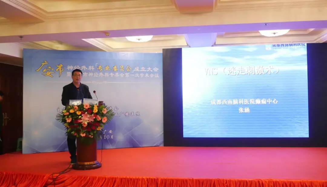 10月20日,继“广安市医学会神经外科专业委员会成立”大会之后,“广安市医学会神经外科专委会次学术会议”在广安市玛瑙城国际酒店如期召开。四川省神经外科医生、成都西南脑科医院功能神经外科主任、医学博士张涵在会上作了题为《VNS技术在癫痫外科的应用》的学术报告,受到与会神经外科医务人员的欢迎和好评。