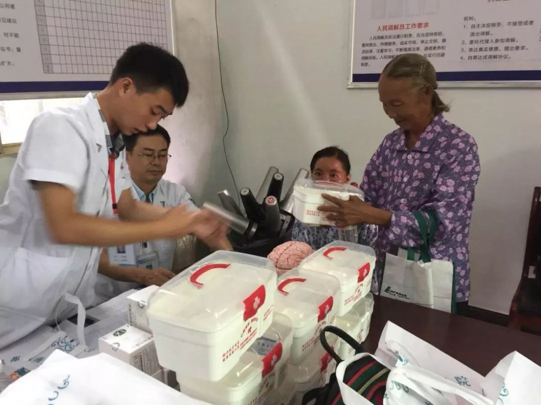 本次活动中,由脑科医生及大学生志愿者组成的5人服务团队,为44名残疾人和脑病患者发放了康复宣传手册、急救医药箱和常用药品,西南脑科医院医生杨君伟为他们进行了一对一的康复指导,详细了解患者的身体情况及治疗情况,并提出了具有针对性的康复建议,向患者普及健康和急救知识。