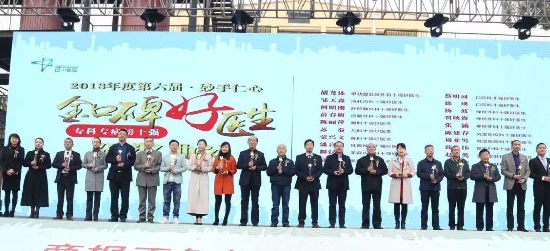 11月10日上午,由成都商报社主办的第六届“妙手仁心·金口碑好医生”十强好医生、人气十强好医生以及专科专病榜十强好医生颁奖典礼在东郊记忆盛大举行。