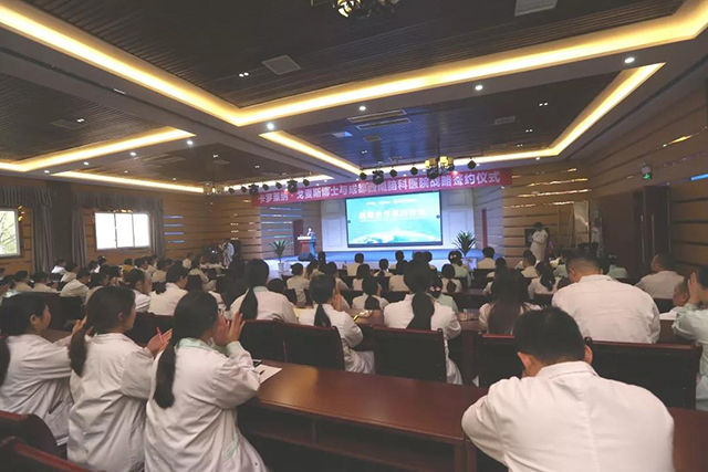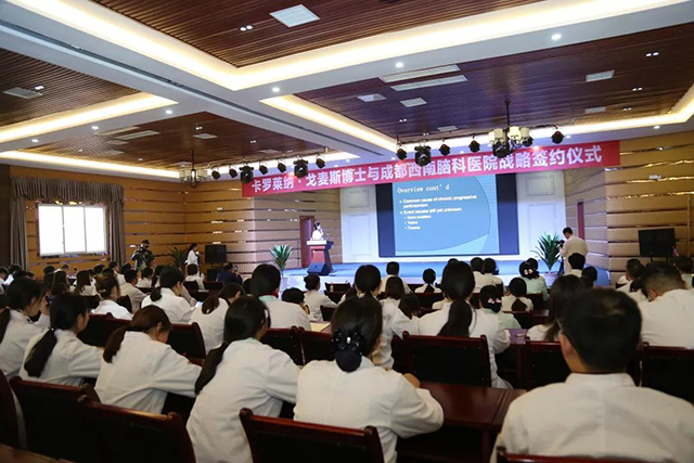 出席了本次签约仪式的领导和医生有:美国卡罗莱纳·戈麦斯博士、成都西南脑科医院名誉院长先生,成都西南脑科医院业务院长邢雯梅女士,成都西南脑科医院神经外科医生教授,成都西南脑科医院功能神经外科主任张涵博士,成都西南脑科医院主任医师、三病区主任肖安兵主任,成都西南脑科医院主任医师王宏敏主任,成都西南脑科医院一病区主任程俊主任。医院近200医生务人员参加了此次大会。