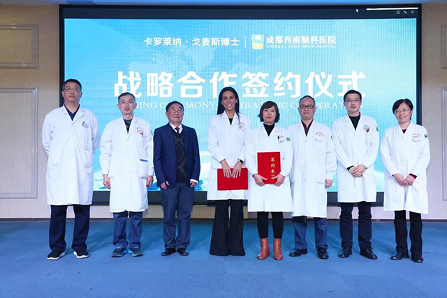 2019年11月23日,“《帕金森病全球大数据及临床诊断康复较新科研成果》讲座暨卡罗莱纳·戈麦斯博士与成都西南脑科医院战略合作签约仪式”在成都西南脑科医院学术会议厅隆重召开。会上,成都西南脑科医院业务院长邢雯梅女士与美国卡罗莱纳·戈麦斯博士分别代表双方签署了战略合作协议文本。此举标志着成都西南脑科医院医疗服务水平又登上了一个新台阶。