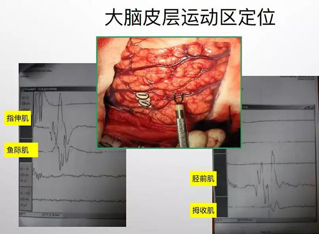 脑肿瘤、血管畸形或癫痫病灶切除的手术中,可以根据神经电生理测定对大脑皮质运动区和感觉区定位,决定手术皮质入路及切除范围,减少手术对运动皮质的损伤。