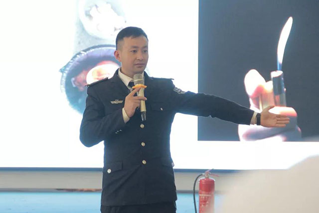 王赟主任讲座主题是“防范火灾风险 · 建设美好家园”。他先通过大量实际生活中的真实案例视频、幻灯片向大家讲述了用电安全,家庭消防知识、燃气安全使用、炒菜锅燃油起火和初期火情处置,还讲解了灭火器的分类及使用方法、发生火情后如何进行逃生自救等知识。一个个触目惊心的火灾现场场景和灾后场景,震憾了在场的员工。