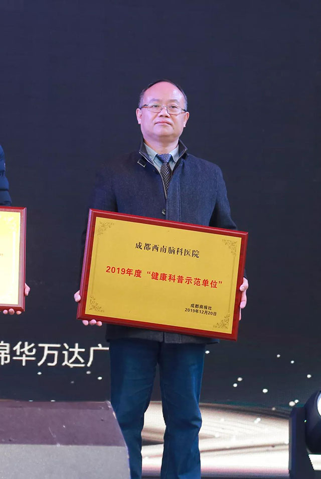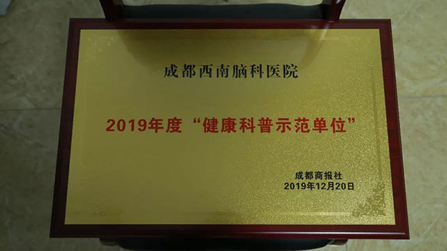 12月20日,成都西南脑科医院从近百家医院中脱颖而出,荣获“2019健康科普示范单位”奖项,该奖由四川省预防医学会、成都商报传媒集团及成都商报四川医生联合颁发。