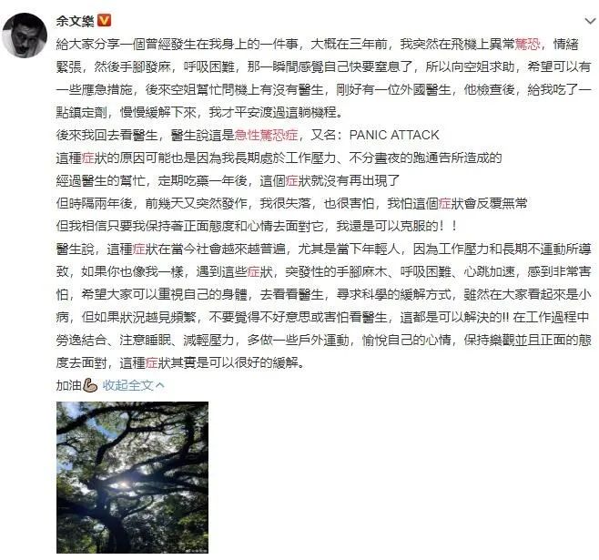 6月2日,余文乐在社交平台上发文,自曝自己患有急性惊恐症,一时间引发网友热议。