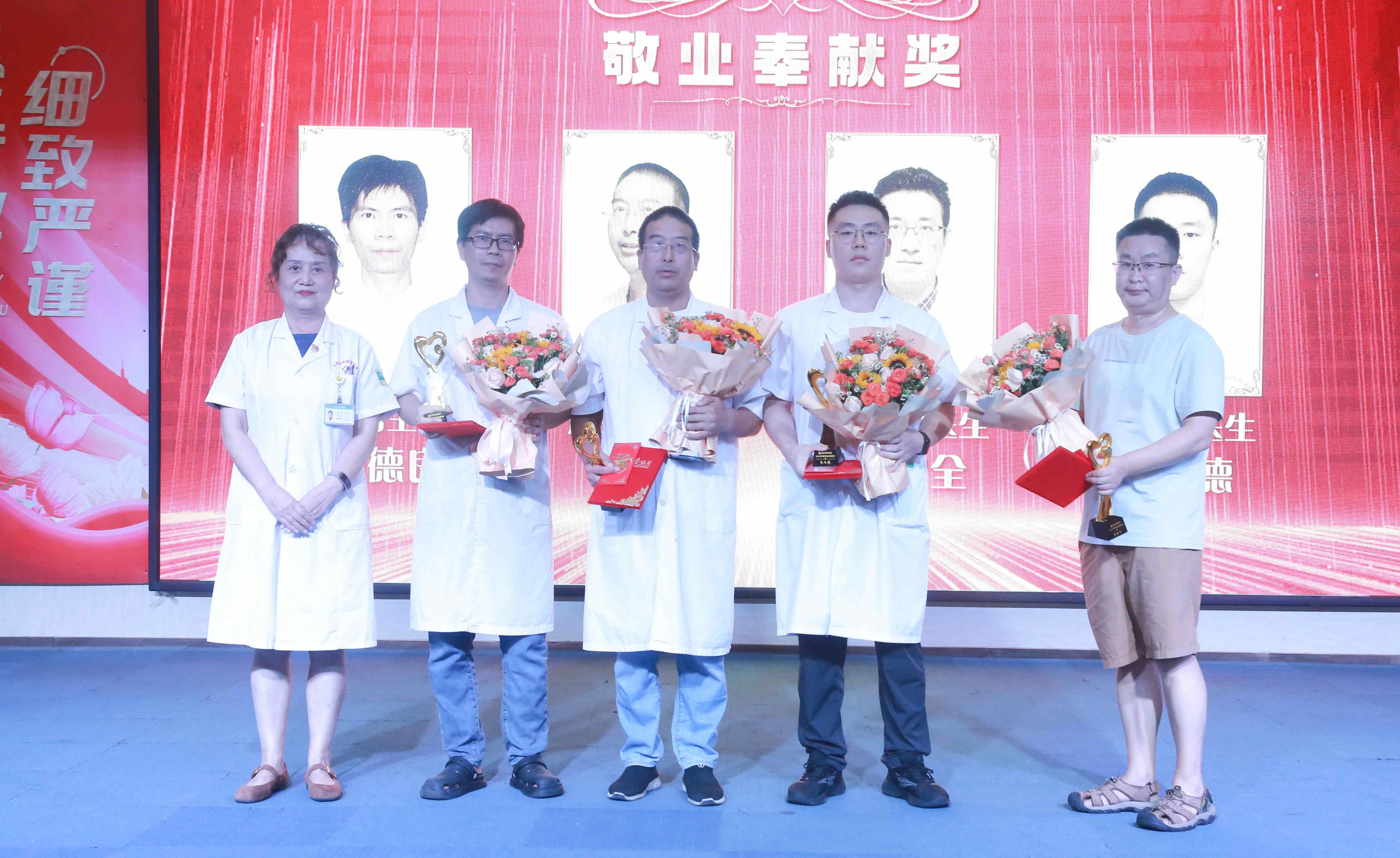 获得敬业奉献奖的是:药房主任赵德良、放射科主任姜鸿杰、手术室医生昝安全、康复科医生朱文德。