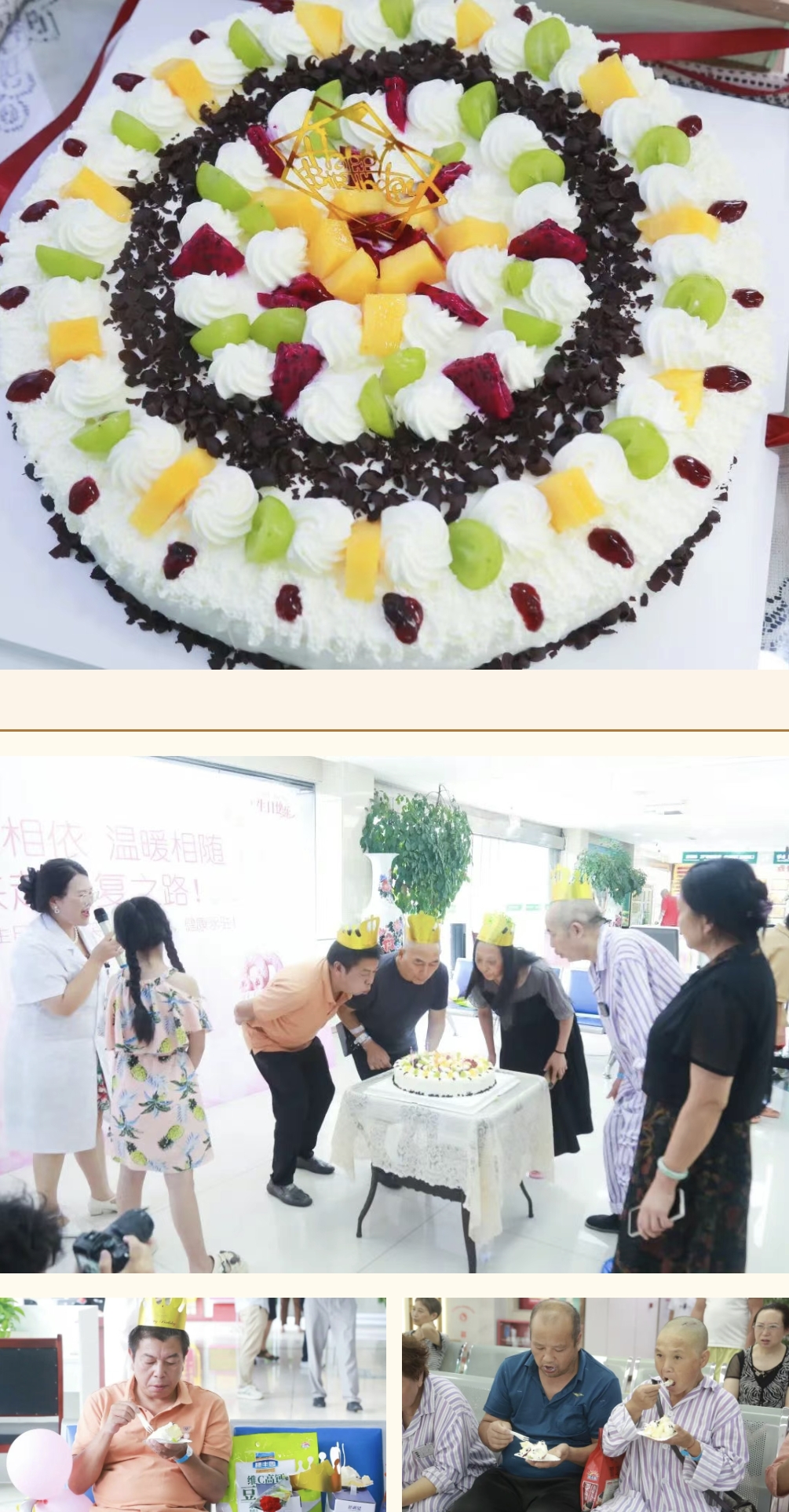 本次生日会由回访部张娇主持,寿星们陆续戴上生日帽后,医院党支部书记王桂芝代表院方,向本月过生日的住院患者,送上了真挚的慰问和生日祝福。