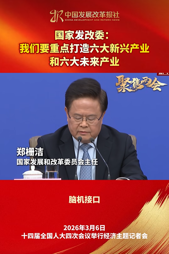 3月5日,在十四届全国人大四次会议发布的政府工作报告中明确提到,2026年我国将培育壮大新兴产业和未来产业,并点名脑机接口为需扶持的未来产业之一。