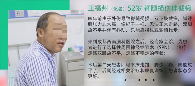 治疗:张涵博士团队为患者行选择性周围神经缩窄术,解决走路双脚放不平,走路不稳的症状