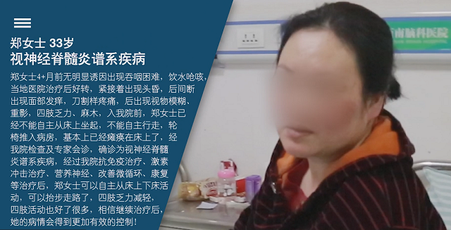 郑女士 33岁 视神经脊髓炎谱系疾病