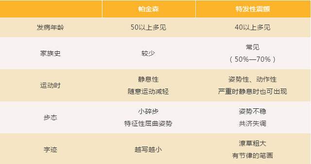 Q:特发性震颤的手抖和帕金森的手抖有什么区别?