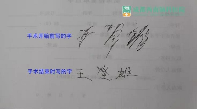 王大叔术前与术后30分钟写的字对比