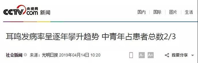 整体来说,耳鸣先是与年龄相关的。60岁以上人群耳鸣发病率可达25%~30%,很长一段时间,人们也始终认为耳鸣是老人才有的烦恼。但不幸的是,耳鸣也开始呈现年轻化的趋势。