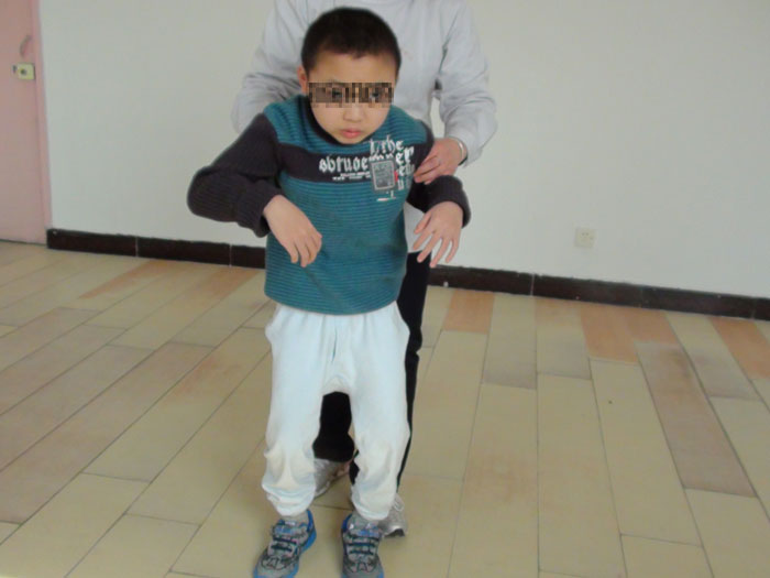 经过一段时间的治疗,小昀(化名)现在已经能够独自站立,下肢僵直也有了明显的改善,站立时双足跟可放平着地,行走起来更加自然。
