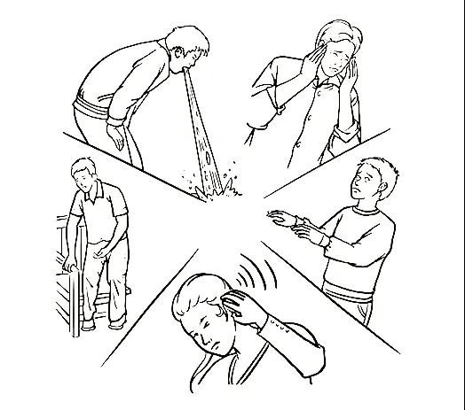 其中,头痛、呕吐是较常见的症状,多由高颅压或脑积水引起。头痛加剧时,呈喷射样呕吐,如上图所示。如果颅内压持续升高,会引发脑疝,极为凶险!