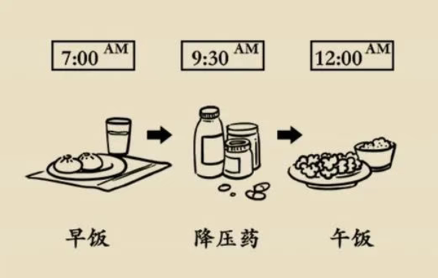 在两餐中间服用降压药,避免服药距某一餐时间过近。