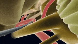 强有力的证据证明,大约95%的患者是由于血管压迫三叉神经所致。微血管减压术就是在麻醉后,从耳后切一个4~5cm的小切口,然后在颅骨上面钻一个一元钱硬币大小的小孔。