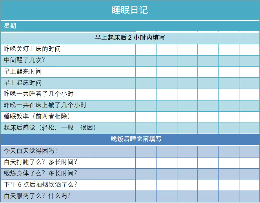 记录 1 周睡眠日志,以平均睡眠时间为基准设定卧床时间(如平均睡 5 小时,仅 23:00-4:00 卧床),睡眠效率≥85% 后逐步延长卧床时间。